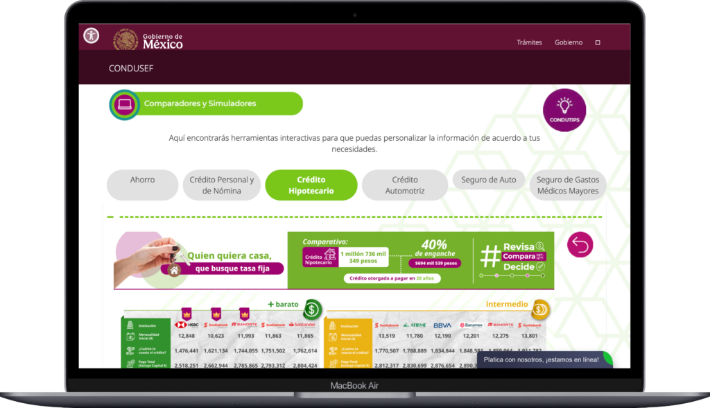 💡 Tip: entra al simulador de CONDUSEF para comparar créditos y ver cuánto pagarías mes a mes.